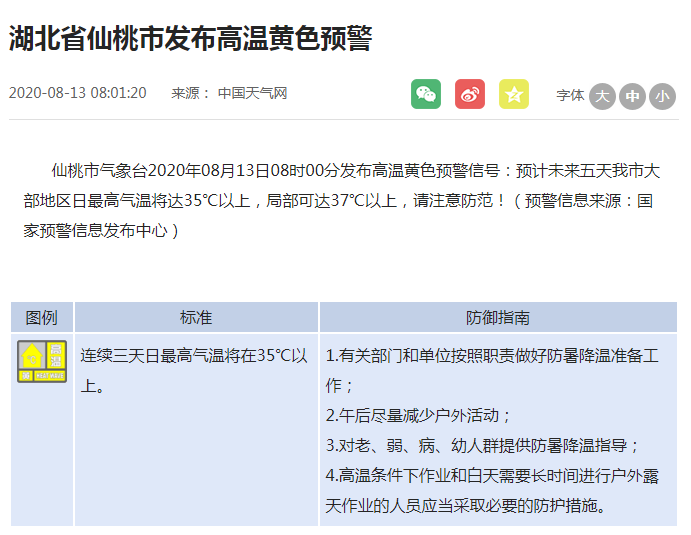 高温黄色预警来了